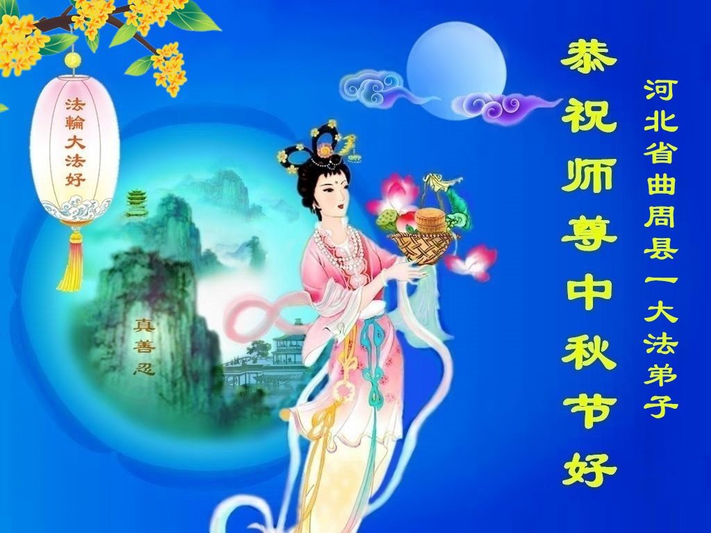 恭祝师尊中秋节快乐! 弟子们会听师父的话,修好自己,多救世人,不负师尊苦度。 河北省沧州市南皮县一学法小组全体大法弟子敬上 河北省阜城大法弟子恭祝师尊中秋快乐!