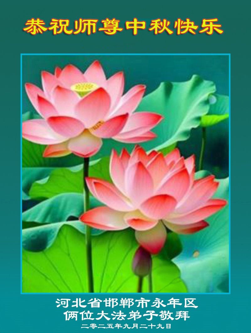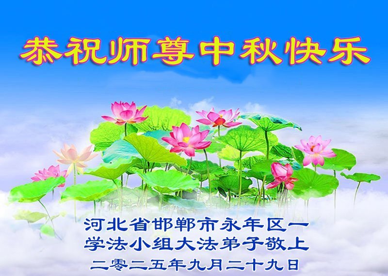 感恩师尊救度之恩,弟子唯有精進实修,做好三件事以报师恩! 河北省邯郸市永年区一大法弟子敬上 二零二五年九月二十九日 河北省邯郸市永年区一学法小组五位大法弟子恭祝师尊中秋快乐!