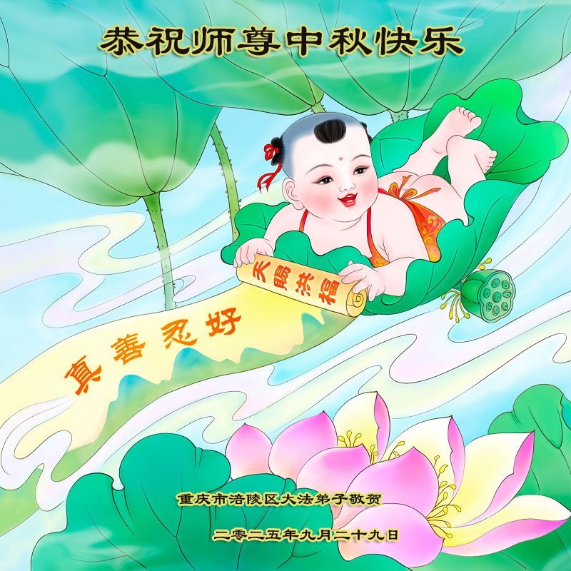 【明慧网二零二五年十月四日】 重庆市巴南区李家沱一大法弟子恭祝慈伟大的师尊中秋快乐!