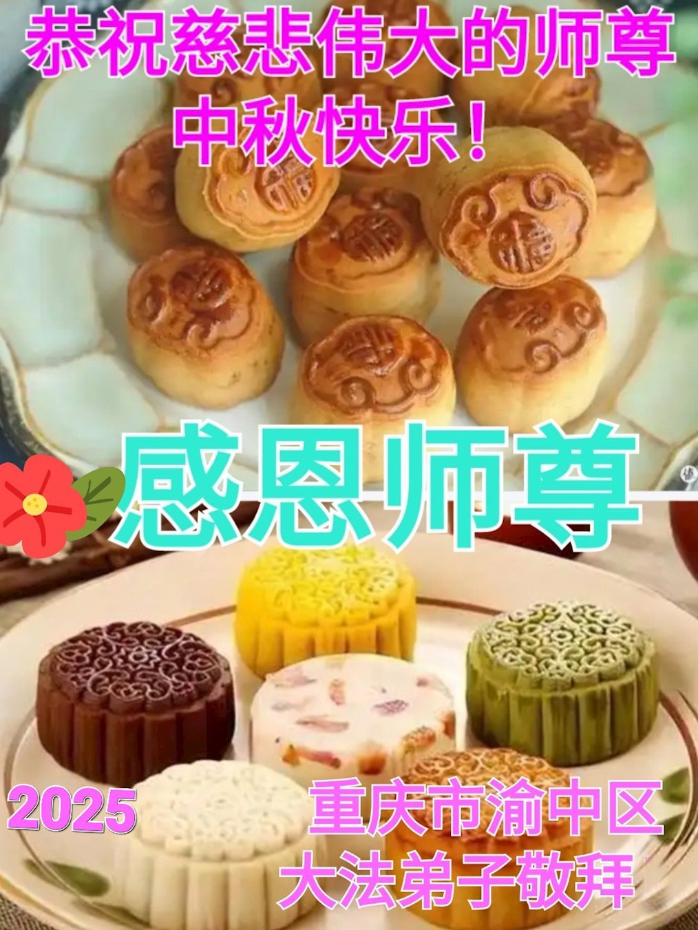 一年一度的中秋节又到了。弟子想念师父!师父您辛苦了!恭祝师父中秋节快乐! 千言万语也表达不了对师父的感恩,弟子唯有勇猛精進,兑现誓约跟师父回家! 重庆一大法弟子叩拜 2025年9月30日 重庆市江北区一女大法弟子恭祝师尊中秋快乐!