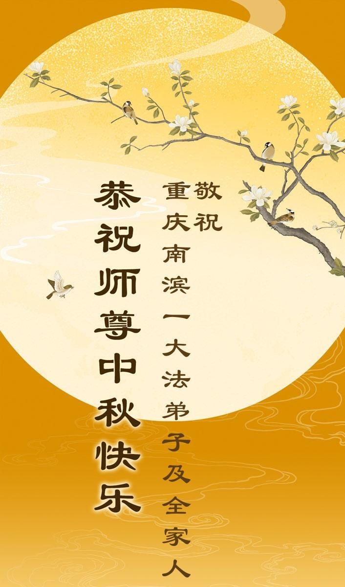 师父您好!师父您辛苦了!我们会在剩下不多的日子里,继续做好三件事,多救人,实修自己,继续精進不停直达圆满,跟您回家。 重庆一大法弟子恭祝师父中秋节快乐!