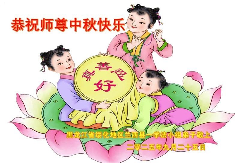 恭祝师尊中秋快乐! 感恩师尊慈悲救度!您为救度众生操尽了心,付出了一切。人类的语言是表达不了弟子感恩之心的。弟子唯有听师尊教诲,做好三件事,兑现誓约,跟师尊回家。 黑龙江省海伦市被绑架到邪恶黑窝的大法弟子敬上 二零二五年九月二十三日 黑龙江省绥化市兰西县全体大法弟子恭祝师尊中秋节快乐!