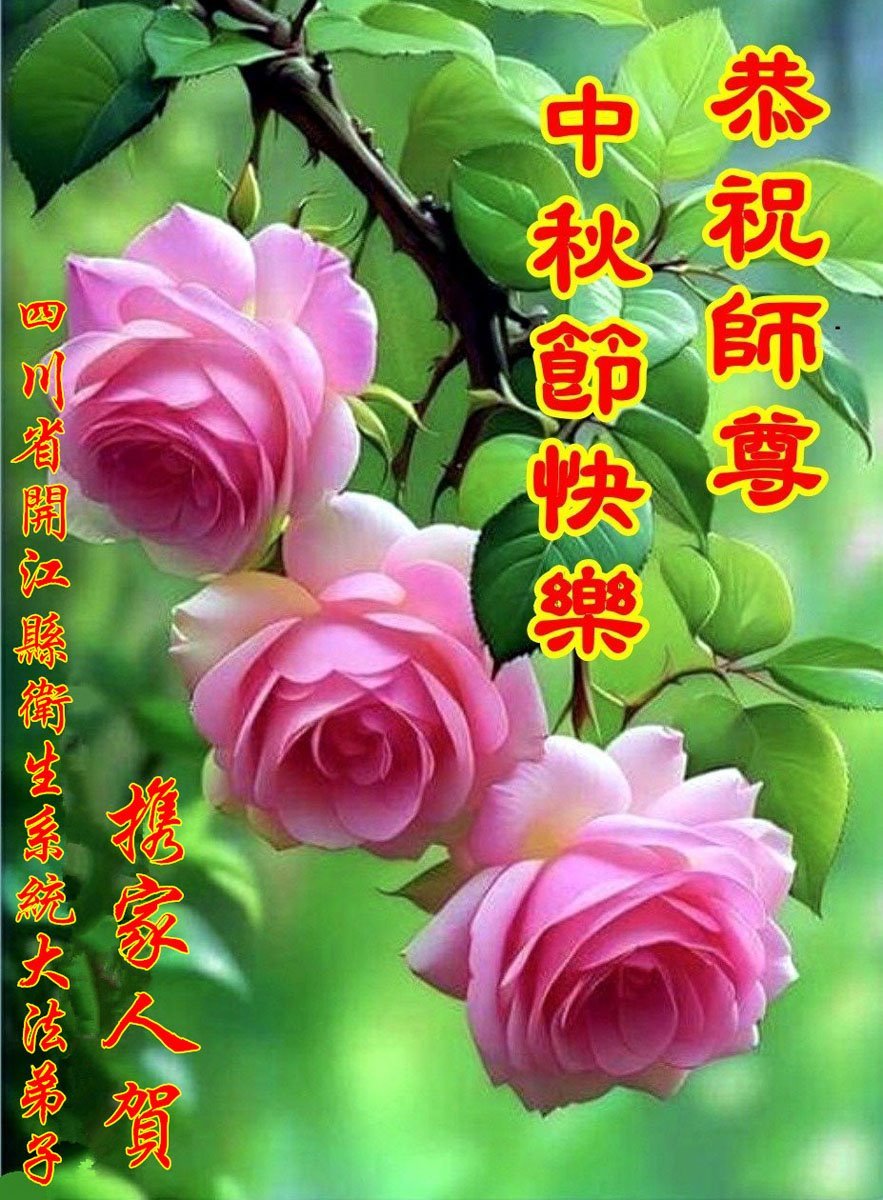 师尊您好!师尊您辛苦了! 感恩师尊的慈悲救度,感恩师尊的一路看护,弟子一定精進实修,做好三件事,走好最后的路,完成使命!弟子叩谢师恩! 石家庄炼油厂大法弟子敬上 中国大陆医疗卫生系统全体大法弟子恭祝师尊中秋快乐!