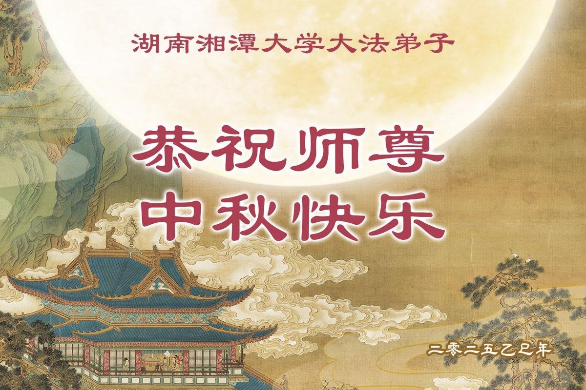 湖南湘潭大学大法弟子恭祝伟大的师尊中秋快乐!