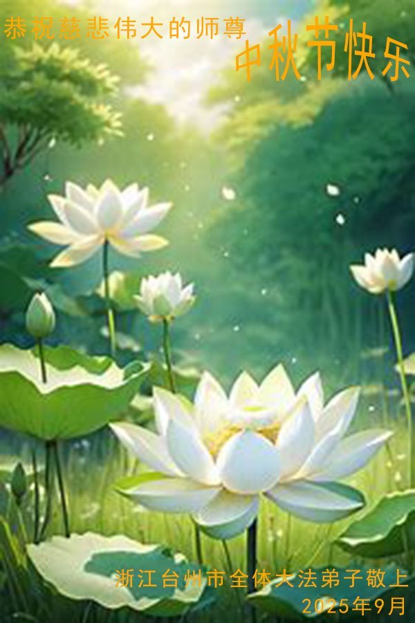 恭祝师尊中秋快乐! 浙江省台州市大法弟子敬上 二零二五年九月二十六日 浙江省杭州市大法弟子恭祝师尊中秋节快乐!