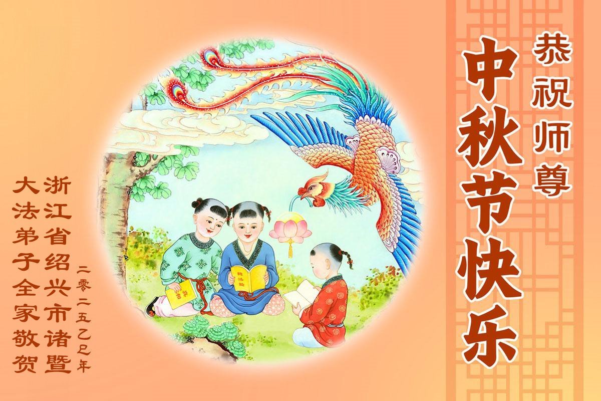 浙江省绍兴市诸暨大法弟子全家恭祝师父中秋节快乐!
