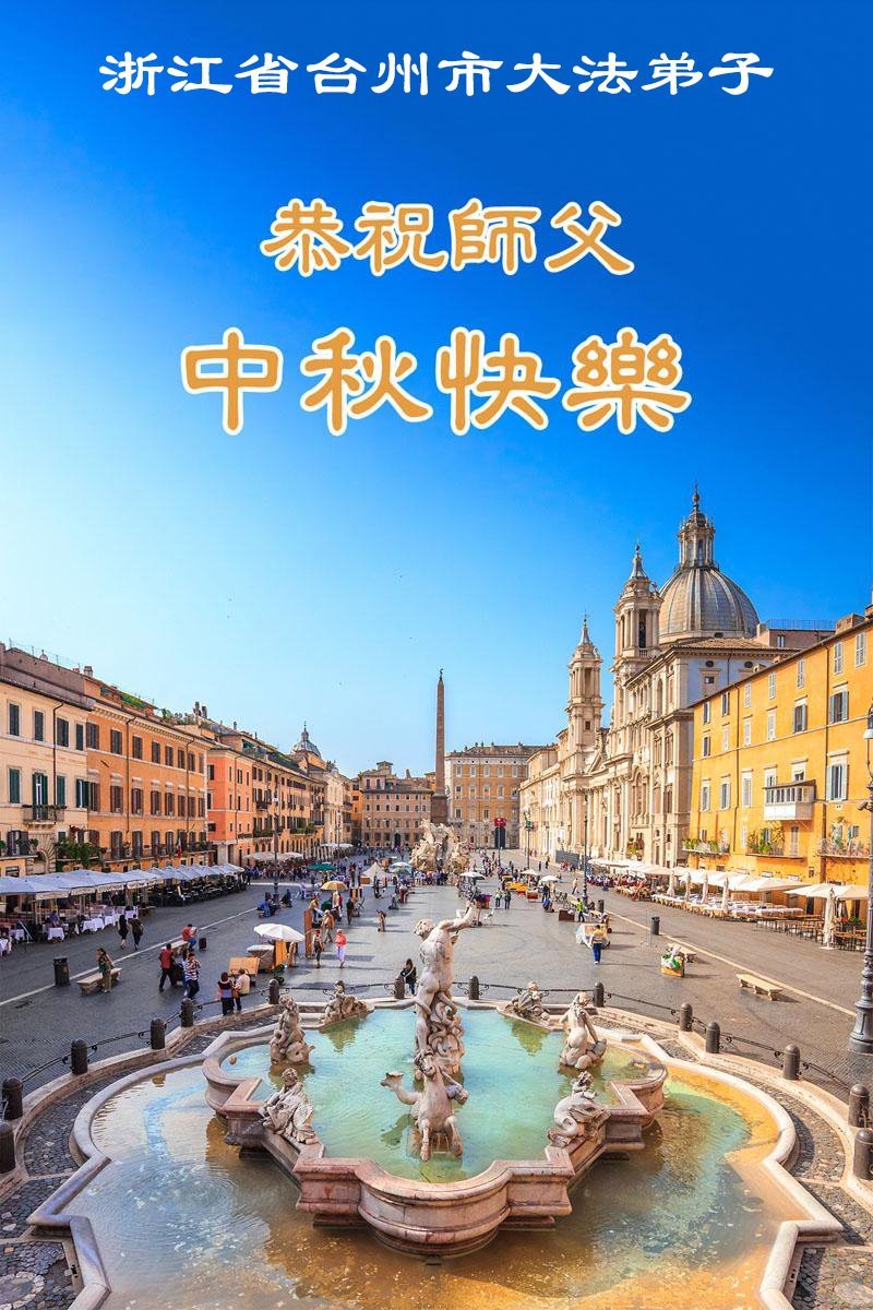 浙江省台州市一大法弟子及家人恭祝师尊中秋节快乐!