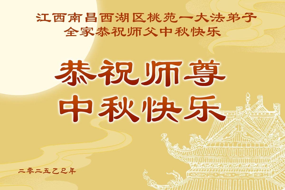 恭祝慈悲伟大的师尊中秋节快乐! 江西九江市一家五位大法弟子 二零二五年九月三十日 江西省一大法弟子恭祝师尊中秋快乐!