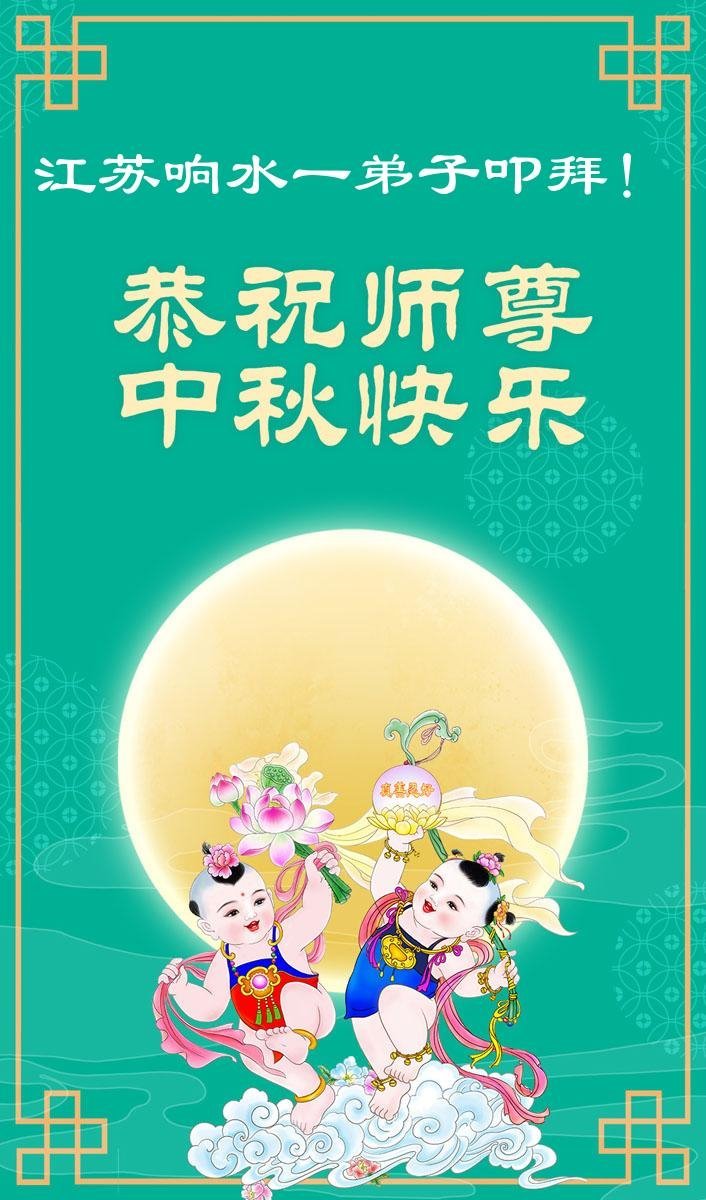 恭祝师父中秋节快乐! 中秋时节月更圆, 佳节来临倍思亲; 弟子跪拜法像前, 感谢师尊救度恩; 弟子精進世间行, 多救世人步不停; 中秋月圆天将明, 弟子盼师回中原。 江苏盐城大法弟子叩拜 江苏省常州市一大法弟子恭祝师尊中秋节快乐!