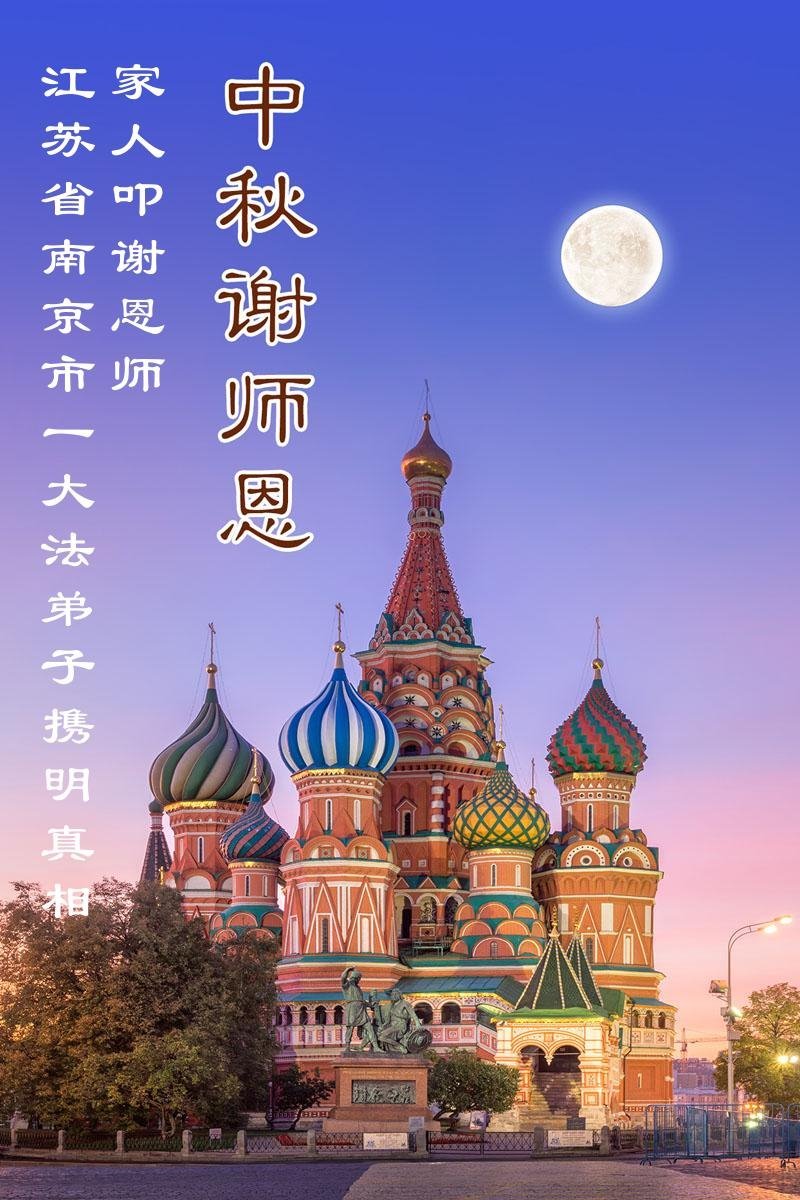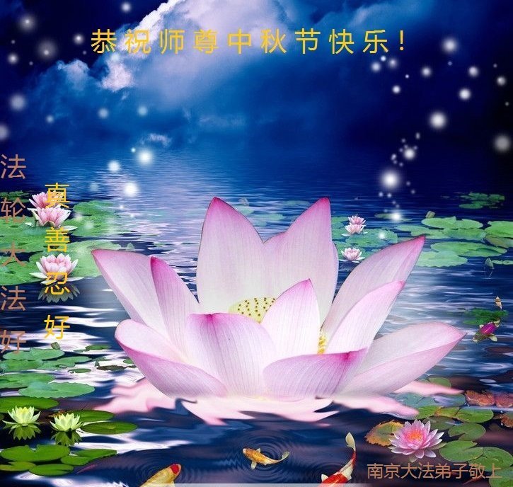 弟子用尽人世间的语言也无法表达对师尊的感恩!唯有做好师尊要求的三件事。盼望早日和师尊团聚! 江苏省南京市一大法弟子敬祝师尊中秋节快乐!