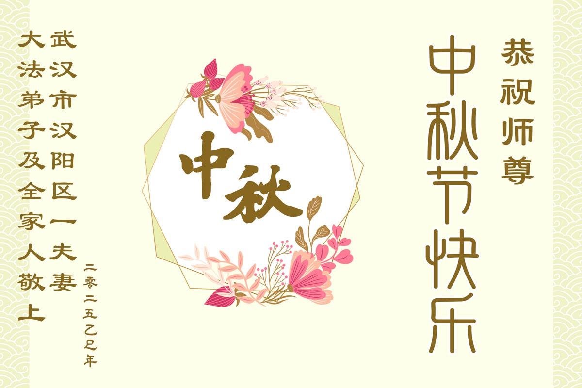弟子感恩师尊慈悲救度!我们会努力学好法,做好三件事,救度更多众生。 湖北省武汉市硚口区二位大法弟子恭祝师尊中秋节快乐!