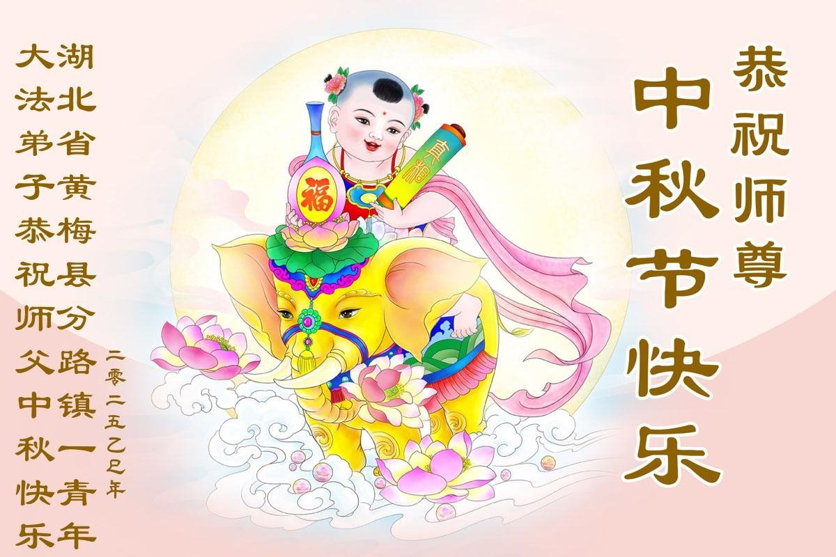 湖北省黄冈市黄梅县分路镇一青年大法弟子恭祝师父中秋快乐!