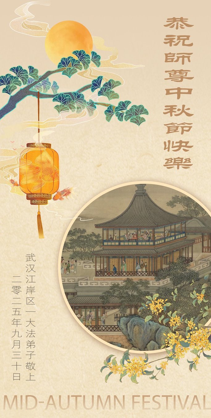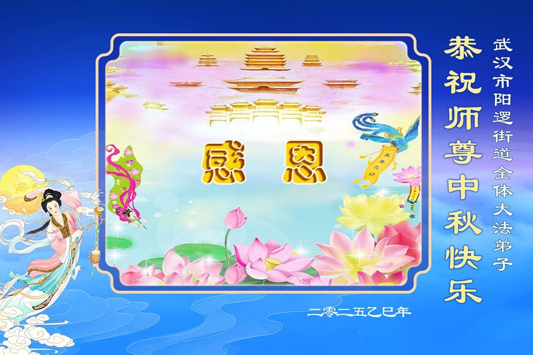 师尊您好!感恩师尊慈悲救度! 湖北省宜昌市大法弟子 二零二五年十月二日 湖北省武汉市大法弟子恭祝慈悲伟大的师尊中秋节快乐!