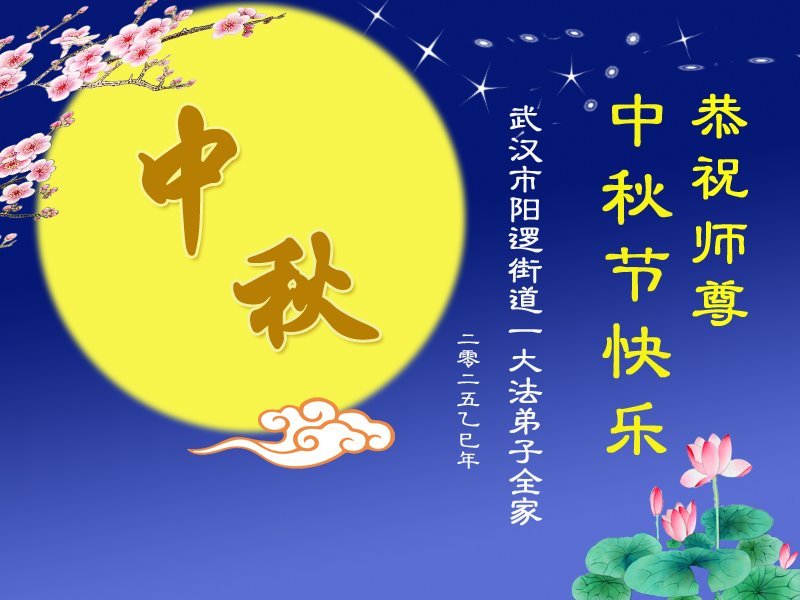 恭祝师尊中秋快乐! 弟子会做好三件事,学好法,提高心性,兑现誓约。 湖北省武汉市江汉区一学法小组大法弟子敬上 二零二五年九月三十日 湖北省黄冈市麻城市一大法弟子恭祝师尊中秋节快乐!
