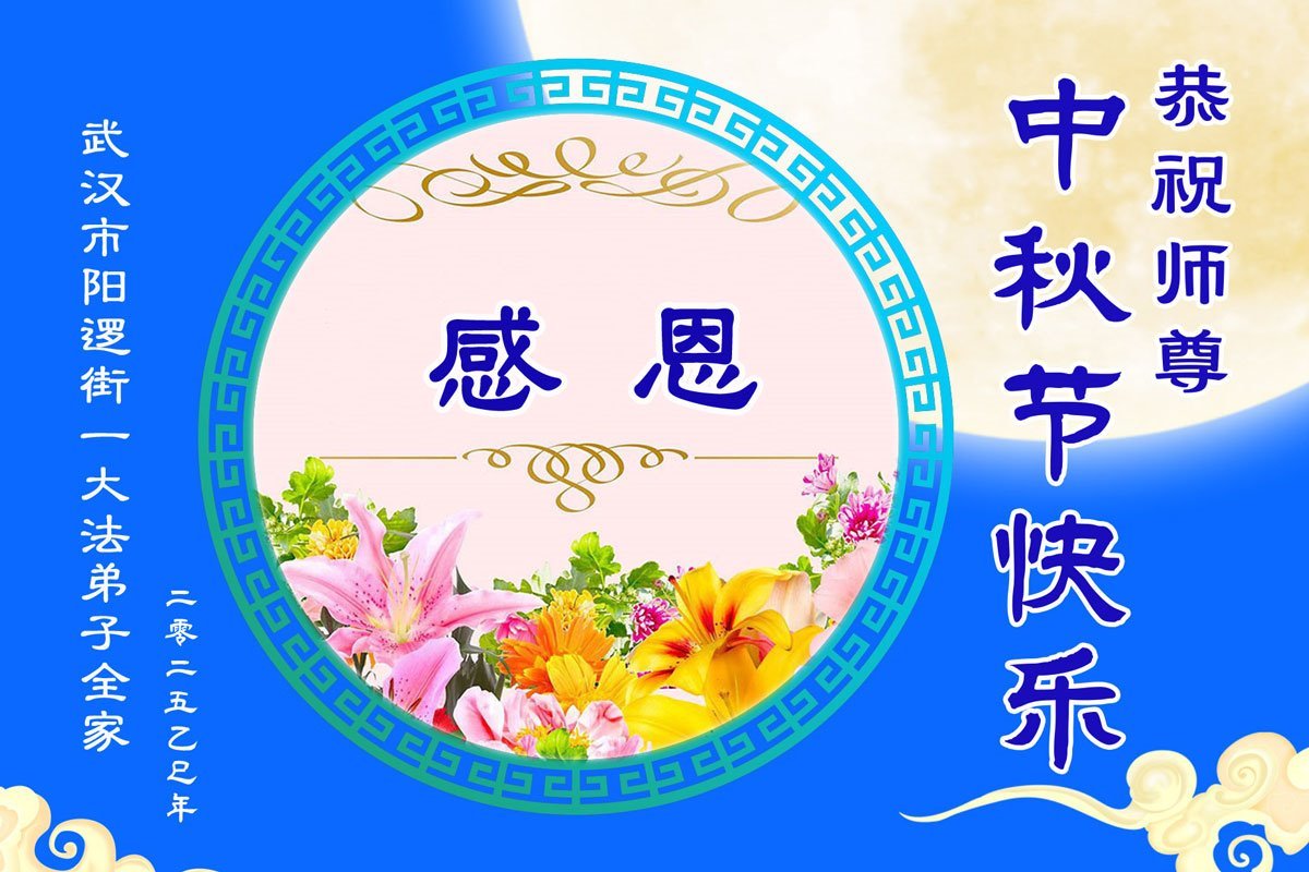 湖北武汉市一大法弟子及家人敬贺师父中秋节快乐!