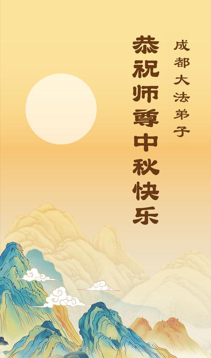 祈盼师尊早日回归故乡。我们大陆大法弟子也想与师尊共度佳节! 四川省成都市大法弟子恭祝师尊中秋快乐!