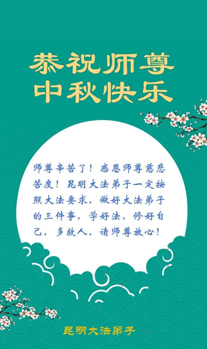 师尊好,师尊辛苦了!感恩师尊慈悲苦度! 云南省昆明大法弟子恭祝师父中秋节快乐!
