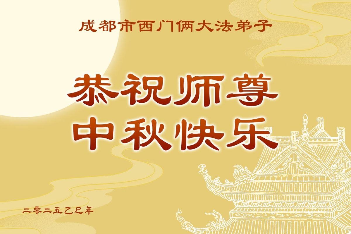 慈悲伟大的师尊您好!师尊您辛苦了!恭祝师尊中秋快乐! 师尊,我在大法中已经修炼二十八年了,在修炼路上,是师尊一直在看护和点悟着我。感恩的心无法用常人的语言来表达!弟子唯有做好三件事,走正助师正法的修炼之路,以报师恩。 四川省成都市一女大法弟子敬上 二零二五年十月一日 四川省成都大法弟子恭祝师尊中秋快乐!