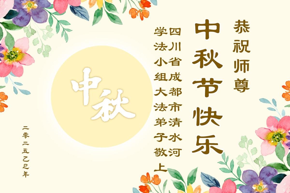 四川省成都市大法弟子 二零二五年十月二日 四川省成都市清水河学法小组大法弟子恭祝师尊中秋节快乐!