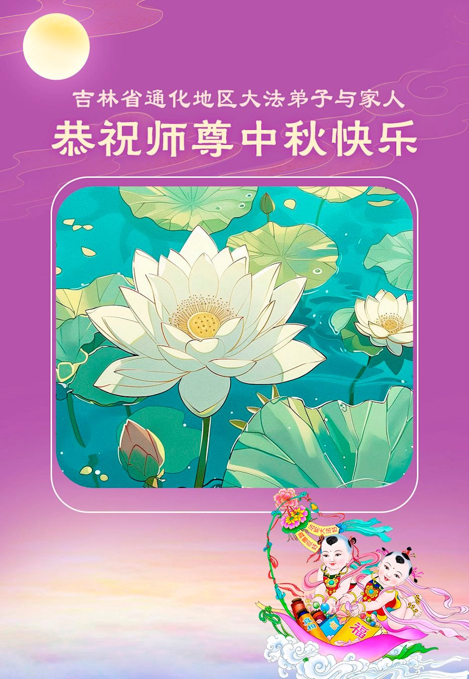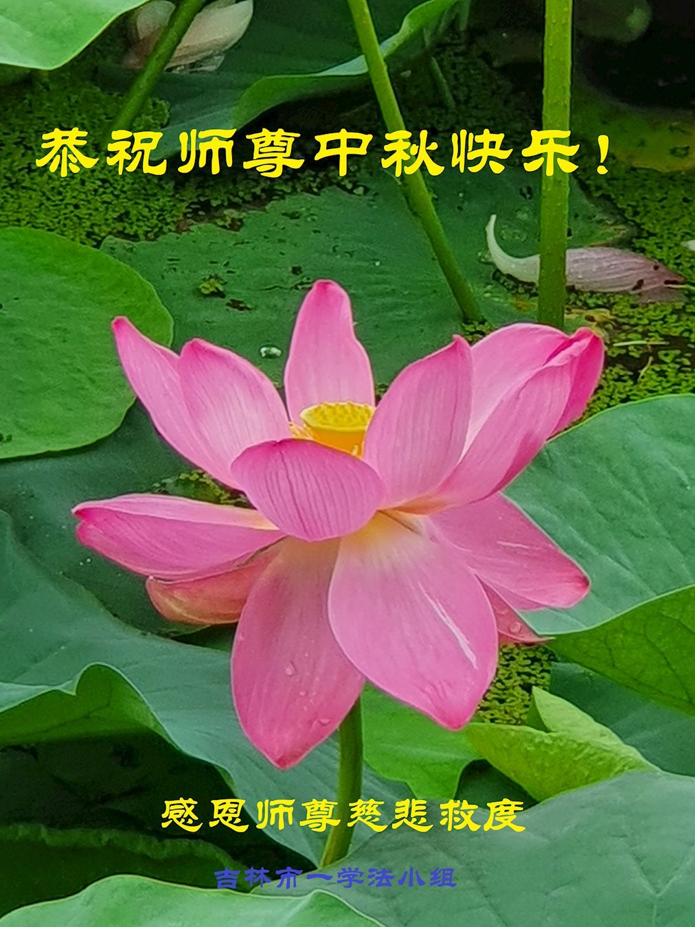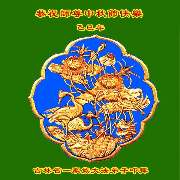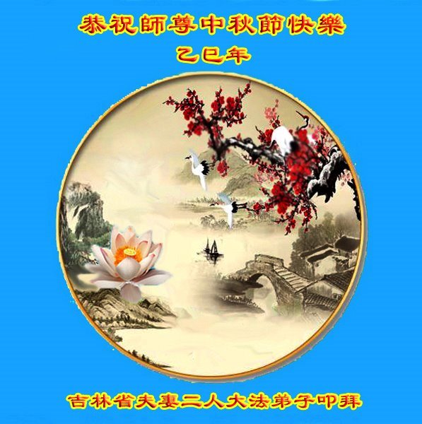 师尊您好!恭祝师尊中秋节快乐! 感恩师尊慈悲苦度!感恩师尊时时引领弟子在大法中归正不好的思想与行为,用大法洗净自己,修去人念。弟子要助师救人,做好三件事,完成自己的誓愿。跟随师父回家!叩拜恩师 吉林省吉林市大法弟子敬上 吉林省吉林市大法弟子恭祝师尊中秋快乐!