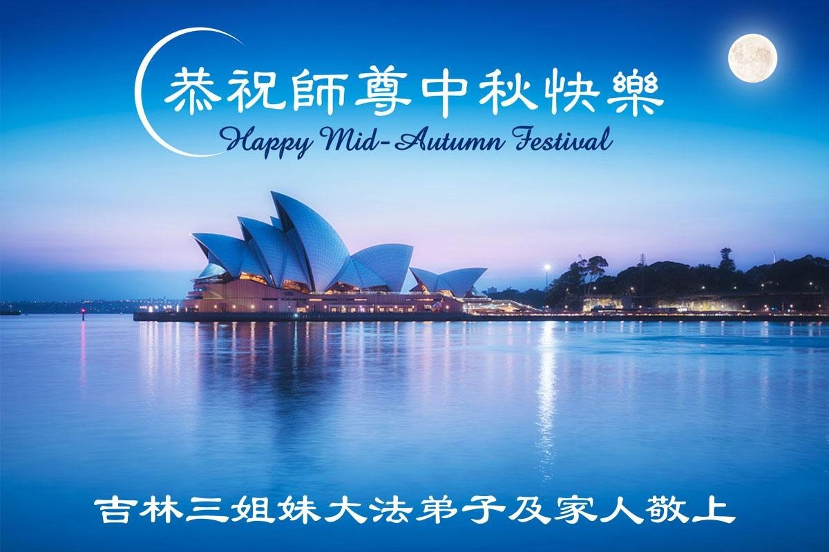 恭祝师尊中秋节快乐! 感谢师父对大法弟子一家人的慈悲救度!弟子也与家人共同见证了大法的神奇。今后会与家人一路弘扬大法,坚定的走师尊安排的正法之路。谢谢师尊! 吉林省通化地区大法弟子与家人敬上 吉林省三姐妹大法弟子及家人恭祝师尊中秋节快乐!