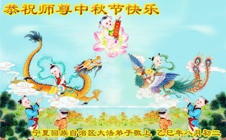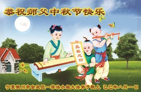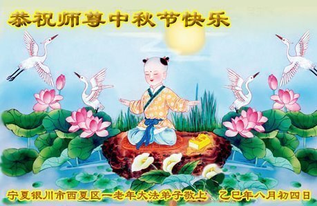 我们母子幸得师尊救度。中秋来临之际,恭祝师尊中秋快乐! 甘肃省金昌市一家庭学法组母子大法弟子敬上 宁夏吴忠市大法弟子恭祝师尊节日快乐!
