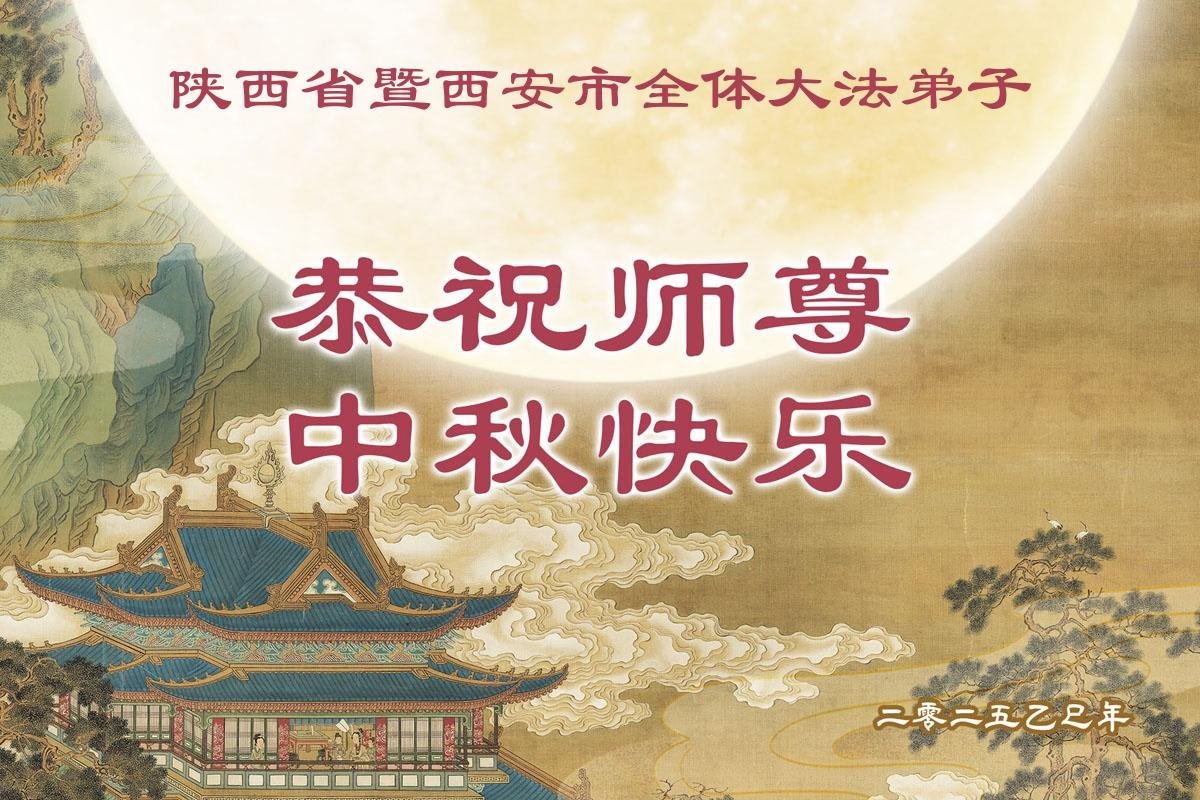 恭祝师尊中秋节快乐!感恩师尊慈悲救度! 陕西省西安市一大法弟子敬上 二零二五年九月二十九日 陕西省西安市全体大法弟子恭祝伟大师尊中秋快乐!