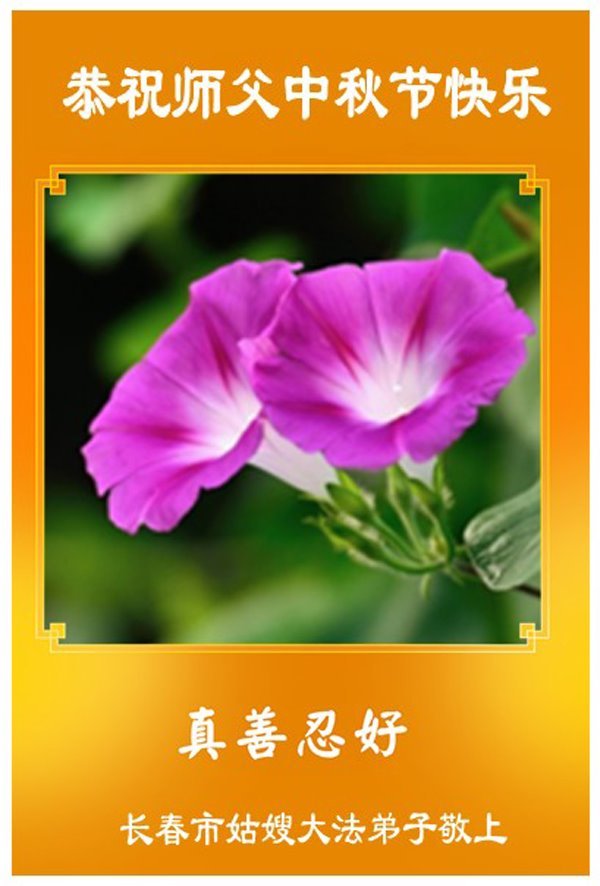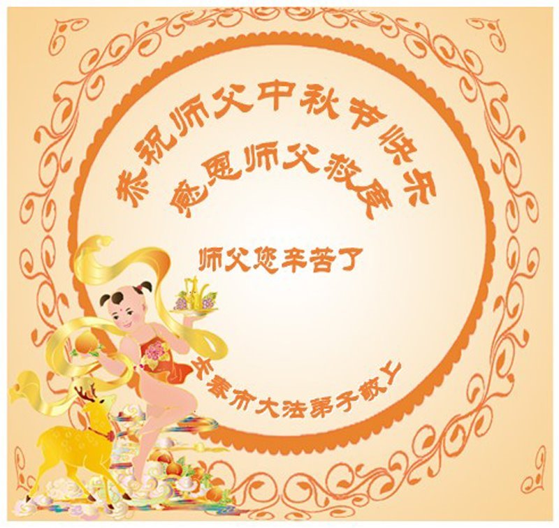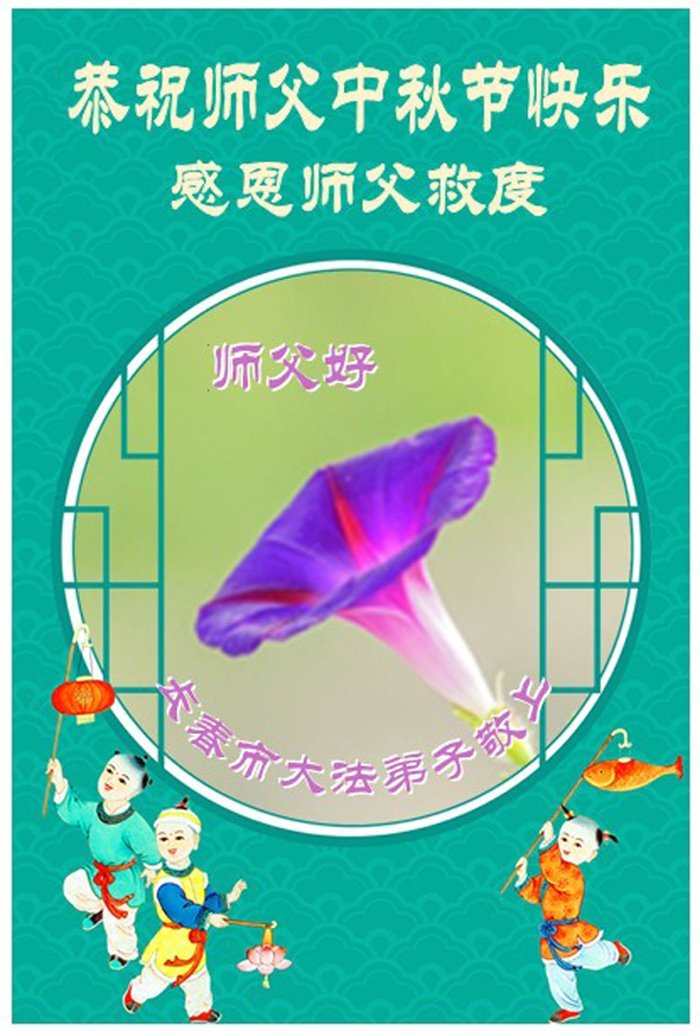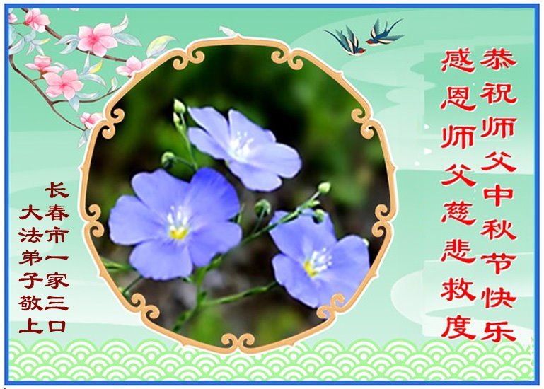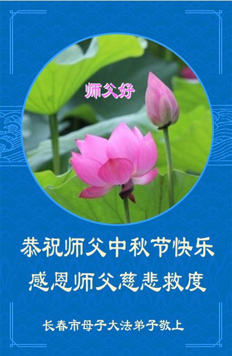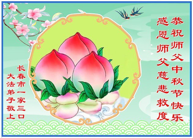 师尊过节好,我们小组全体弟子想念您。我们在最后这段时间里,一定做好三件事,实修自己,完成使命,让师尊放心。 吉林省长春市德惠市大法弟子一家人恭祝师尊中秋节快乐!