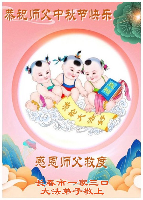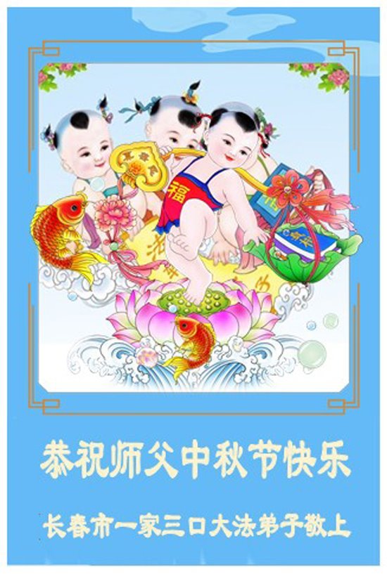 吉林省长春市一家三口大法弟子恭祝师父中秋节快乐!