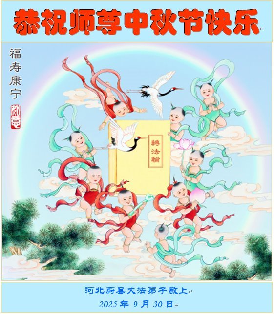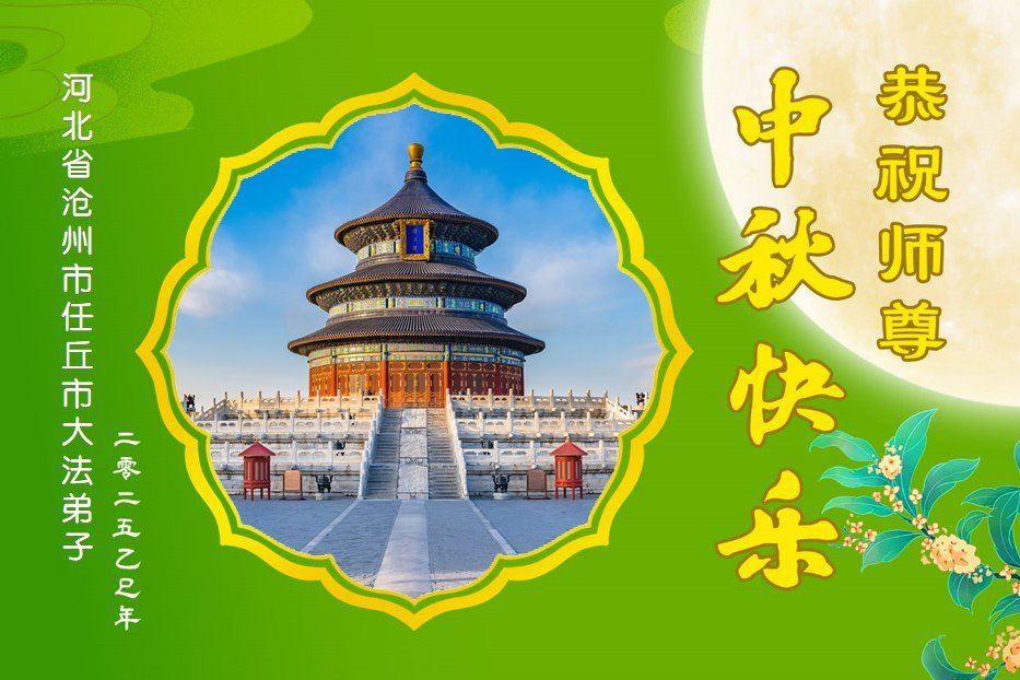 恭祝师父中秋节快乐!法轮大法好!真善忍好!叩拜谢师恩! 河北省衡水市一大法弟子携全家六人敬上 二零二五年十月二日 河北省沧州市任丘市大法弟子恭祝师父中秋快乐!