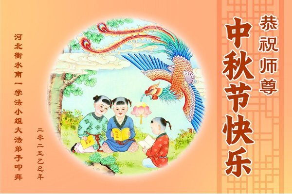 师父您好,我代表全家大小六口人,祝师父中秋节快乐!在您的保护下,全家安康幸福!认同大法、支持我们!在师尊的保护下,我们会做得越来越好!愿师父早日回国! 河北衡水故城县大法弟子恭祝师尊中秋节快乐!