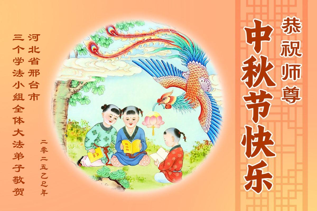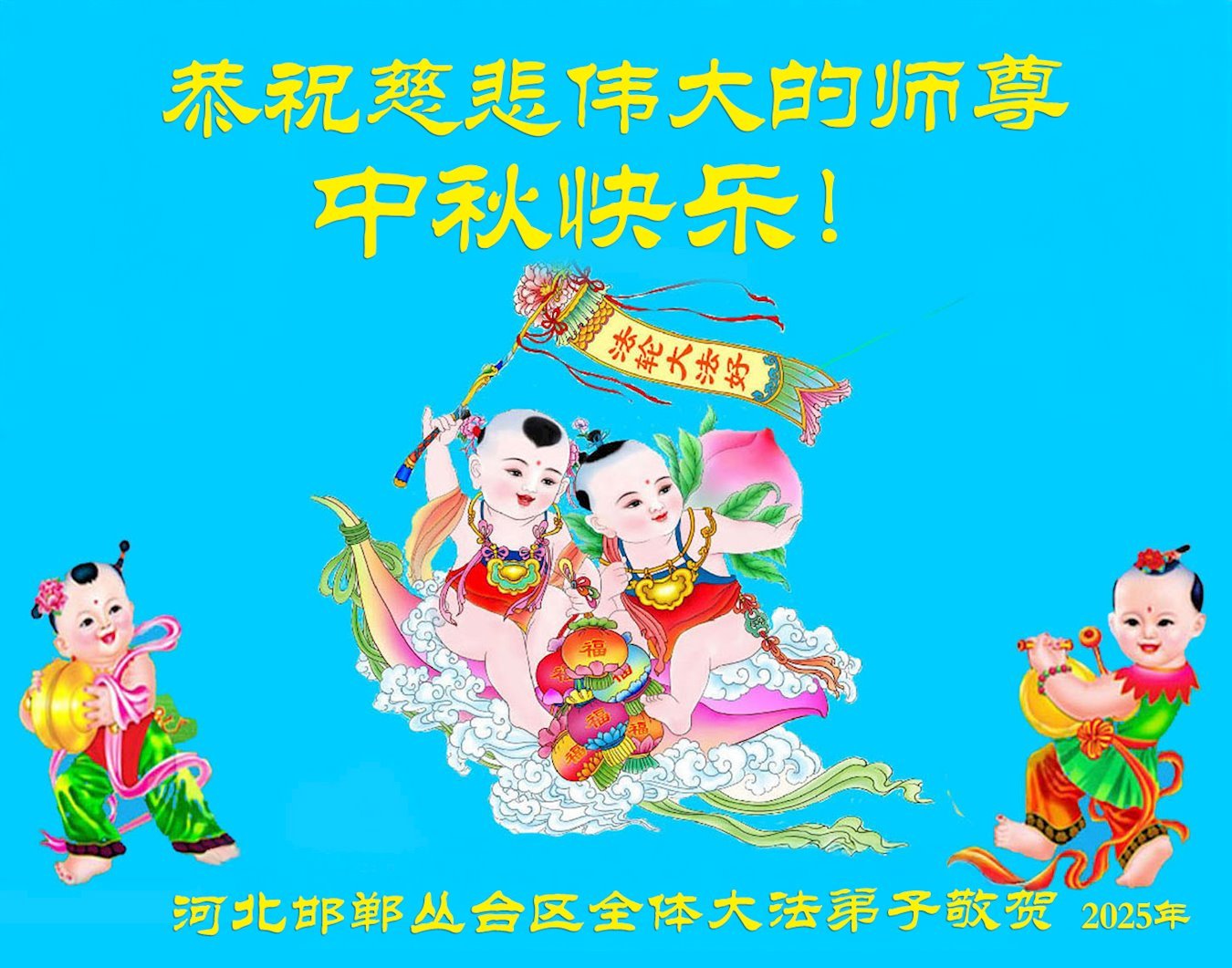 时间飞逝,转眼又一年。弟子们深知,还有很多人等待大法的福音。现在的每一刻都是师尊为众生的得救延续来的。弟子牢记师尊教诲,学好法,坚持实修,相互配合做好三件事。不负使命。感恩师尊! 河北省邯郸地区大法弟子恭祝师父中秋节快乐!