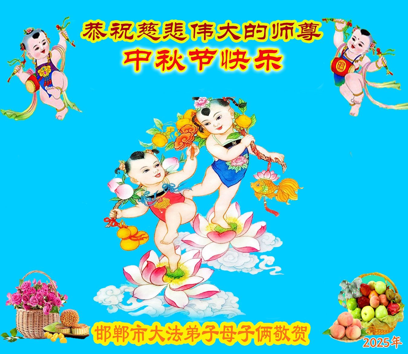 弟子一定会向内找,整体提高,共同精進,做好三件事,圆满随师还 河北省邯郸市大法弟子母子俩恭祝师尊中秋节快乐!