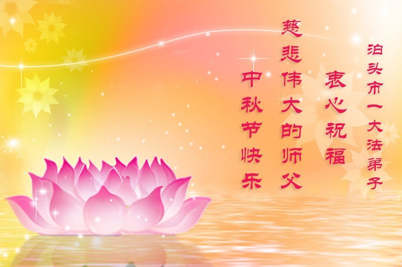 师父您好!师父您辛苦了!弟子一定听师父话,修好自己,多救众生,圆满随师还。 河北省邯郸市曲周县大法弟子恭祝师父中秋节快乐!