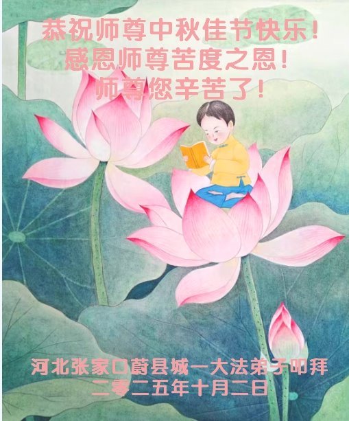 师尊辛苦了!我们全家要配合救度众生。 河北张家口大法弟子全家 二零二五年九月二十九日 河北张家口大法弟子恭祝师尊中秋节快乐!