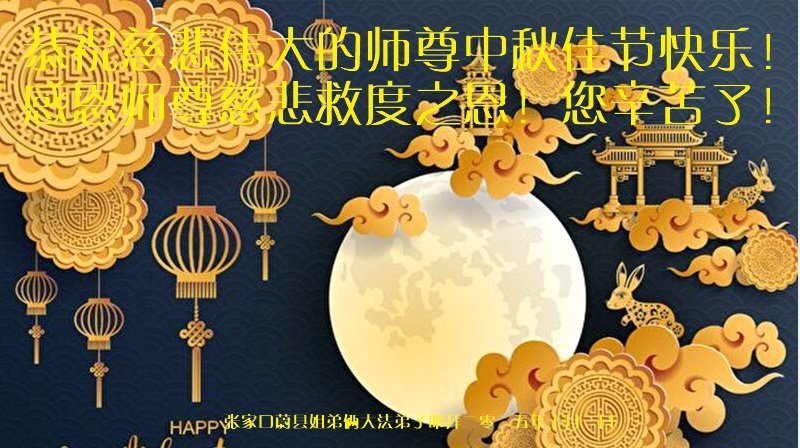 感恩师尊时刻保护弟子,为弟子操碎了心。您为成就弟子与宇宙众生付出自己的所有。弟子与宇宙众生永世万代赞颂师尊的浩荡洪恩! 河北省沧州市东光县大法弟子恭祝慈悲伟大的师尊中秋节快乐!