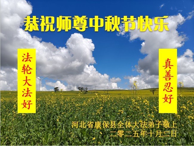 【明慧网二零二五年十月五日】 河北省张家口市涿鹿县一大法弟子恭祝师尊中秋节快乐!