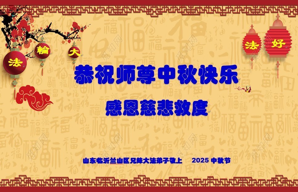 恭祝慈悲伟大的师尊中秋节快乐!谢谢师父慈悲救度! 山东省临沂市兰山区大法弟子敬上 2025年9月29日 山东省临沂蒙阴县流离失所的大法弟子恭祝伟大的师尊中秋节快乐!