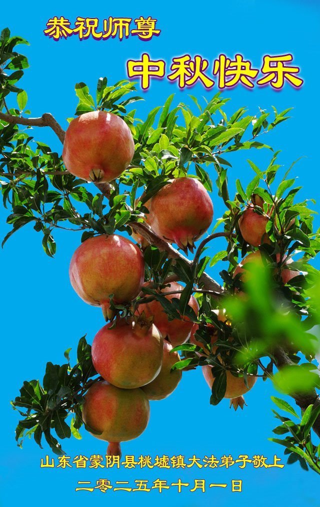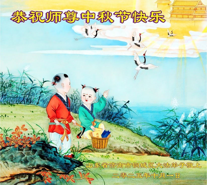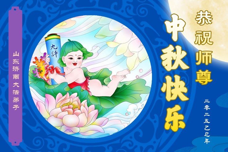 【明慧网二零二五年十月五日】 山东省济南市一大法弟子恭祝师尊中秋节快乐!