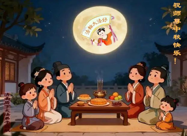 感谢师尊慈悲苦度,弟子唯有精進以谢师恩! 山东济南一学法小组大法弟子恭祝师尊中秋快乐!