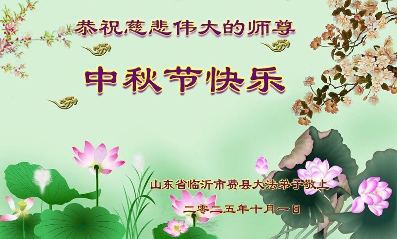 恭祝师尊中秋节快乐! 山东省临沂市蒙阴县桃墟镇一大法弟子敬上 二零二五年十月一日 山东省临沂两姐妹大法弟子恭祝师父中秋节快乐!