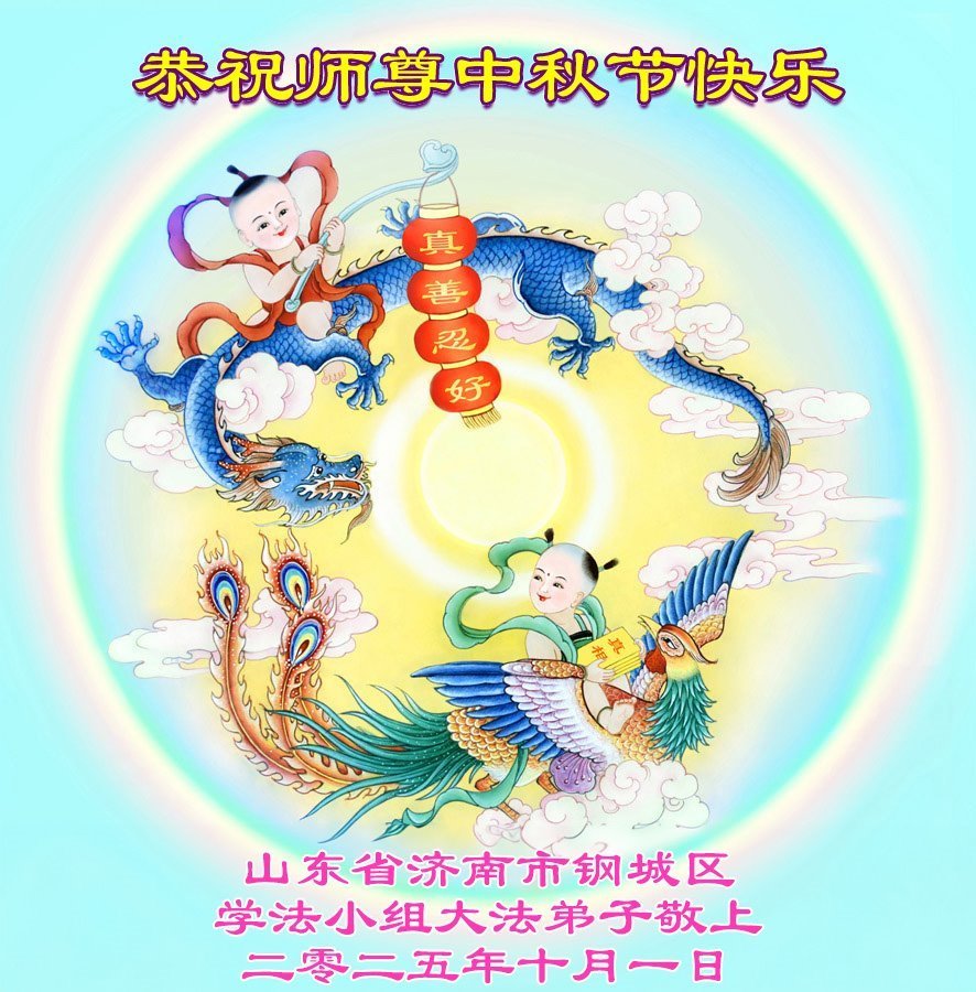 恭祝师尊中秋节快乐! 山东省济南市钢城区学法小组大法弟子敬上 二零二五年十月一日 山东省济南市大法弟子恭祝师尊中秋节快乐!