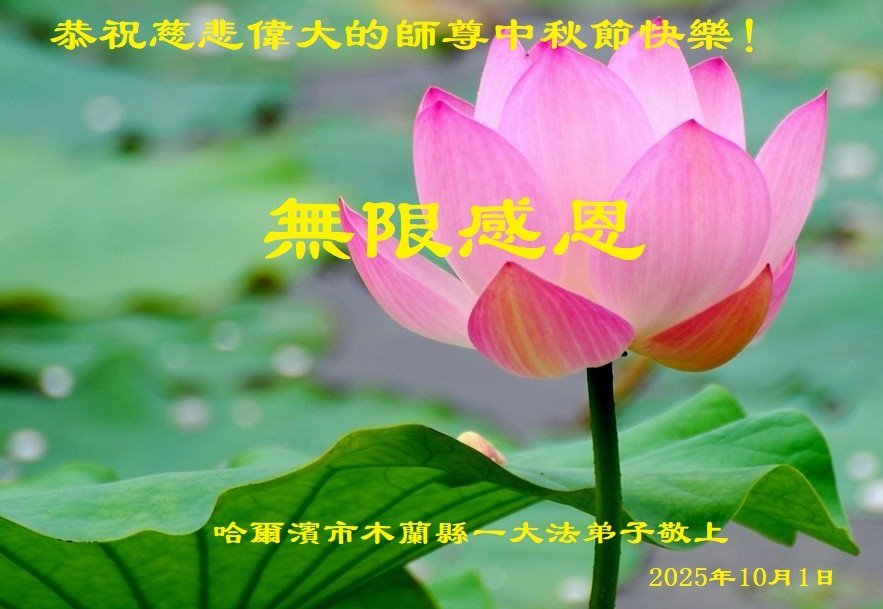 恭祝师尊中秋节快乐!每逢佳节倍思亲,弟子盼望师尊早日回国团聚。感恩师尊的慈悲苦度,您辛苦了!您为我们铺垫了回家的路,您为我们付出了一切,弟子只有精進,做好三件事,兑现誓约,不辜负师尊苦度。 黑龙江省哈尔滨一老年大法弟子跪拜 二零二五年十月三日 黑龙江省哈尔滨市某县大法弟子恭祝师尊中秋节快乐!