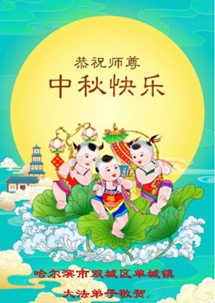 恭祝慈悲伟大的师尊中秋快乐! 黑龙江省哈尔滨市双城区全体大法弟子敬上 黑龙江省哈尔滨一老年大法弟子恭祝师尊中秋节快乐!