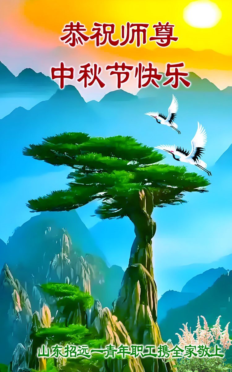 辽宁省朝阳市建平县大法弟子恭祝师尊中秋节快乐! 大法弟子的家属:祝贺慈悲伟大的李大师中秋节快乐! 我是大法弟子的家属,我们是最大的受益者,我们永远支持大法,相信大法,永远和大法弟子站在一起。感谢李大师对众生的慈悲救度,李大师辛苦了!祝李大师中秋节快乐! 湖南省邵阳市92岁老妪感谢李老师的救命之恩