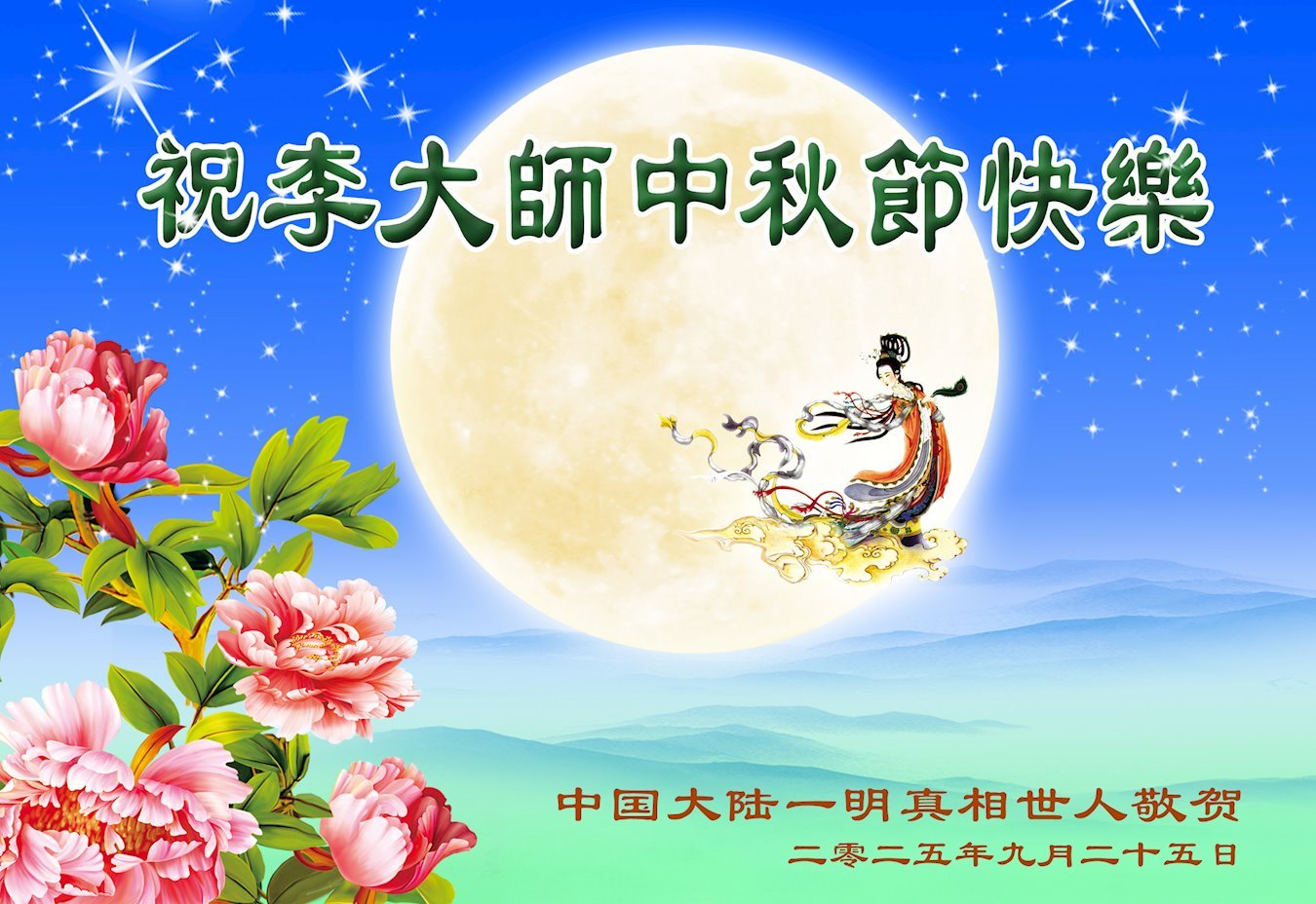 | 【明慧网二零二五年十月五日】(明慧网通讯员综合报道)法轮大法在中国大陆洪传三十三年,中国各界百姓以及大法弟子的亲朋好友见证了法轮大法给予人们身心健康的神奇法力。明真相的百姓摆脱了中共的谎言,同沐法光,亲身受益,在中秋传统佳节到来之际,真诚感谢李洪志大师救度之恩!恭祝李大师中秋节快乐!“我们永远支持大法!” 河北省衡水市大法弟子的儿子讲述,十几年前,他扭了腰,腿疼、腰疼,拔罐、针灸、推拿均无效,最后听从母亲建议,念“法轮大法好!真善忍好!”他说:“有一天,我念着念着,就觉的一股凉风从腰部流向腿部,从那以后腰好了,腿也不疼了,什么事都没了!” 黑龙江省哈尔滨市一位市民说:“我们全家从两岁幼儿至九旬老人十多口人四代同堂,都受益于李大师与法轮大法的浩荡洪恩。我们明白大法真相,并按真善忍做好人,有的亲人患甲状腺癌,有的患乙肝等疾病,都因诚信敬念‘法轮大法好!真善忍好!’而康复,全家平安健康,和睦幸福!” 辽宁省大法弟子的家属:我们永远支持大法!