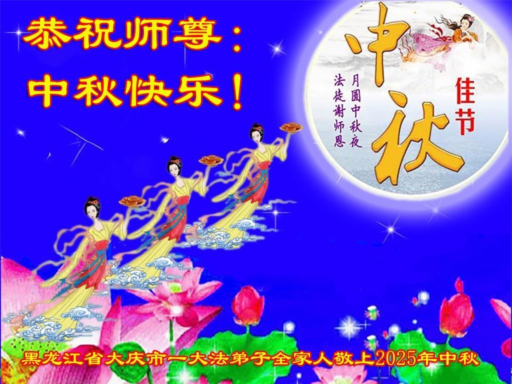 大庆市一大法弟子的家人敬上 二零二五年十月三日 黑龙江省大庆市一大法弟子及家人恭祝师尊中秋节快乐!