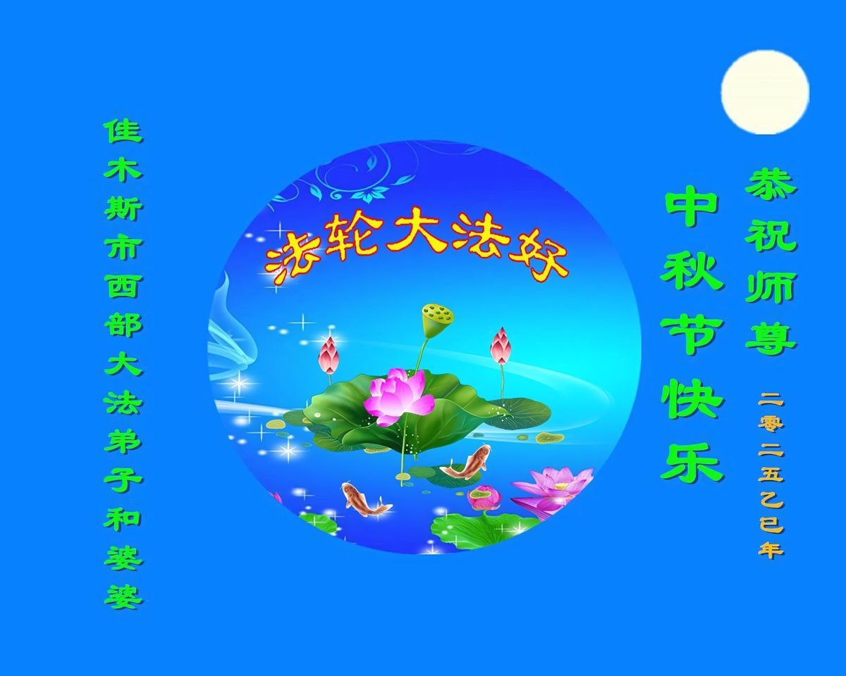黑龙江省佳木斯市一老年女大法弟子携家人敬上 二零二五年十月四日 黑龙江省佳木斯市女大法弟子恭祝师尊中秋节快乐!