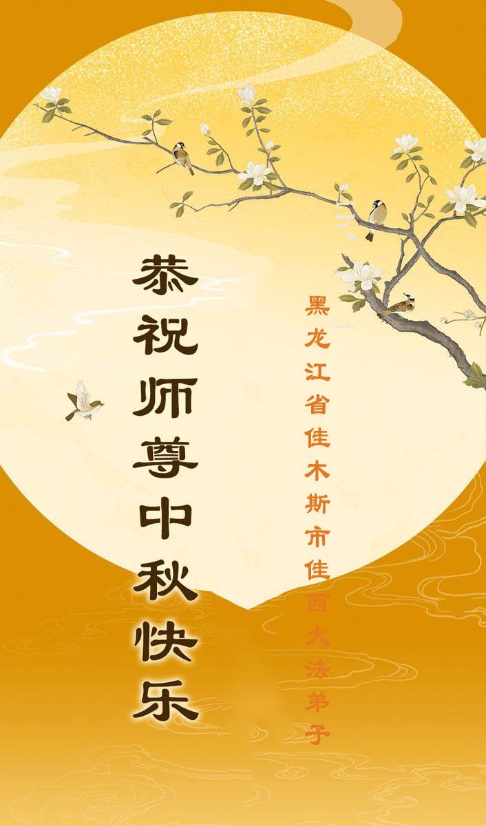 师尊您好!您辛苦了。弟子会珍惜师尊用巨大承受延续来的时间,相互配合好,形成整体,共同精進,携手走好最后的路。 黑龙江省佳木斯市佳西一女大法弟子恭祝师尊中秋快乐!