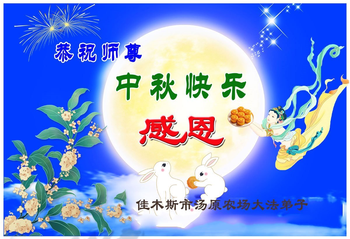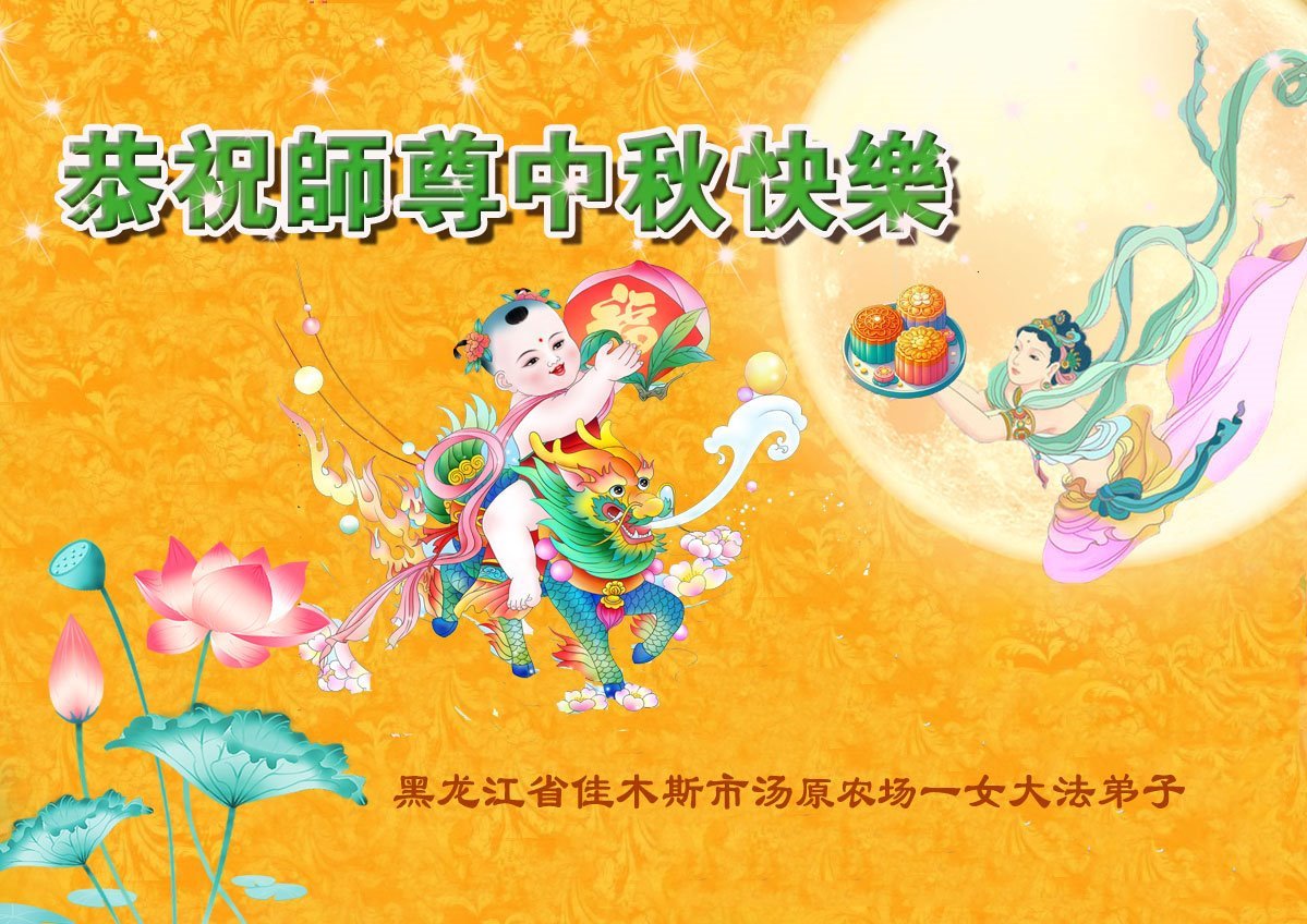 每逢佳节倍思亲,我们期望着与师尊相聚中土的那一刻,期盼着普天同庆大法的救度之恩那一天!谢谢师尊的慈悲苦度 ! 黑龙江省佳木斯东部一新学员恭祝师尊中秋快乐!